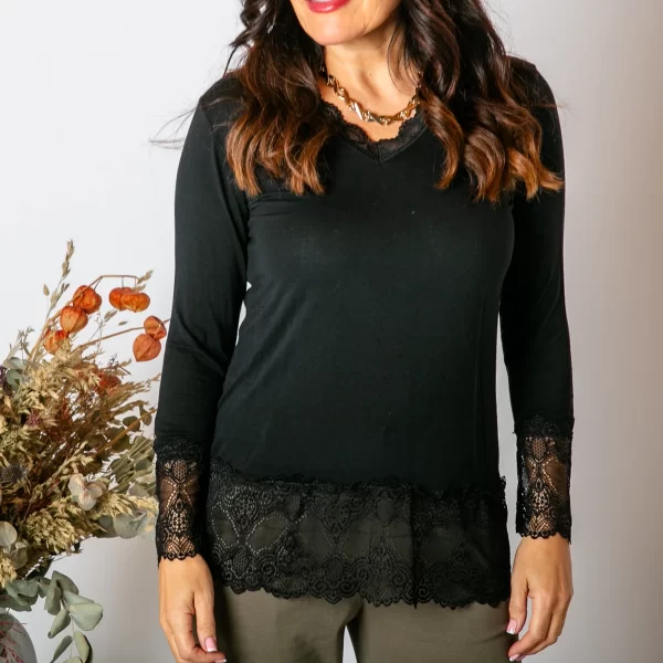 The beautiful lace detailing on this top is perfect for adding a feminine touch to any outfit.